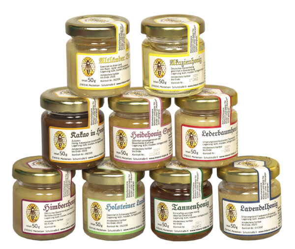Versandhinweis: 8 kleine 50g Gläser füllen den Platz eines 500g-Glases im Versandkarton aus.